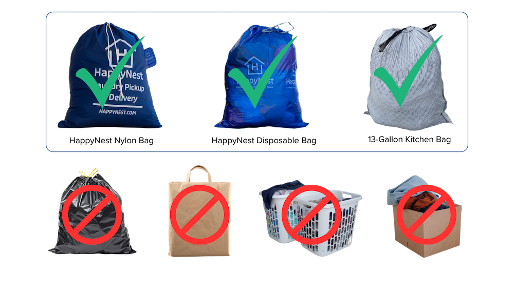 Bitte verwenden Sie für Ihre erste Abholung einen 50-Liter-Küchensack mit Ihrem Namen und der Aufschrift „Für Profiwasch“. Bitte beachten Sie, dass größere Säcke für Ihre erste Abholung verwendet werden können. Je nach Wäschemenge wird jedoch für mehrere Säcke eine Gebühr erhoben. Wir bitten Sie, keine Wäschekörbe oder -kartons zu verwenden, da diese beim Transport beschädigt werden könnten. Nach Ihrer zweiten Abgabe erhalten Sie Ihren eigenen wiederverwendbaren, marineblauen Profiwasch-Sack per Post, den Sie für alle weiteren Abholungen verwenden können. Bitte schreiben Sie nach Erhalt Ihren Namen in das weiße Feld auf der Vorderseite Ihres Sacks.